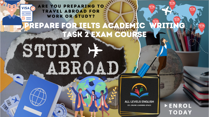 The course commences with the weekly lecture/presentation videos, a corresponding PDF, and a student work booklet that develops the knowledge and understanding required by students for successful writing exam preparation for TASK 1, followed by Prepare for IELTS Academic Writing Task 2 Exam Course.